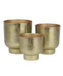 Macetas altas de zinc en color dorado, con base redonda y formas minimalistas. Ideal para decoraciones de Navidad o para la ponsettia. Juego de 3 unidades en tamaños variados.