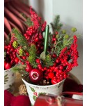Ramillete de pino verde artificial con berries decorativos rojos y hojas verdes. Para decoración centros navideños, o para la puerta en navidad. Complementos decoración de Navidad. Proveedores de complementos para floristería y otros comercios. Proveedores de artículos de Navidad.