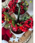 Ramillete Artificial marrón con berries rojos decorativos y piñas nevadas. Para decoración centros Navideños, o para la Puerta en Navidad. Complementos decoración de Navidad. Proveedores de complementos para floristería y otros comercios. Proveedores de artículos de Navidad.