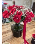 Maceta redonda de cerámica con corazón y decoración floral. Para maceta ES13. Proveedores de macetas para floristería y otros comercios. Decoración para bodas y otros eventos.