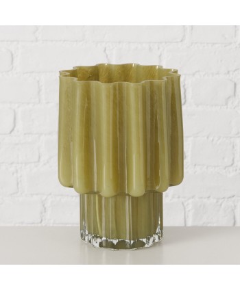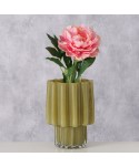 Jarrón de cristal con diseño de rayas en relieve y disponibles en 2 colores: verde y rosa. Proveedor al mayor de jarrones de cristal para floristerías. Decoración con elementos de cristal. Jarrones de cristal de colores para llenar de vida la primavera.
