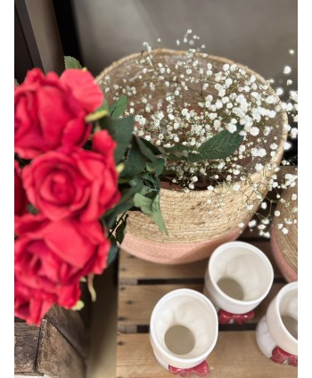 Descripción: Jarrón de cerámica BOWY hecho a mano, en tono blanco y lazo rojo decorativo. Jarrones originales con detalles de lazos preciosos. Ideal para las decoraciones más originales.
