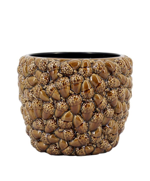Descripción: Elegante Macetero de cerámica con Bellotas. Decoración para Ponsettia y elementos otoñales o navideños. Ideal para las decoraciones más originales.