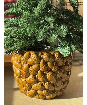 Elegante Macetero de cerámica con Bellotas. Decoración para Ponsettia y elementos otoñales o navideños. Ideal para las decoraciones más originales.
