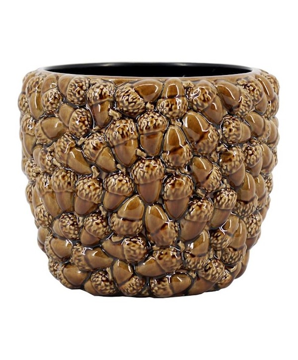 Descripción: Elegante Macetero de cerámica con Bellotas. Decoración para Ponsettia y elementos otoñales o navideños. Ideal para las decoraciones más originales.