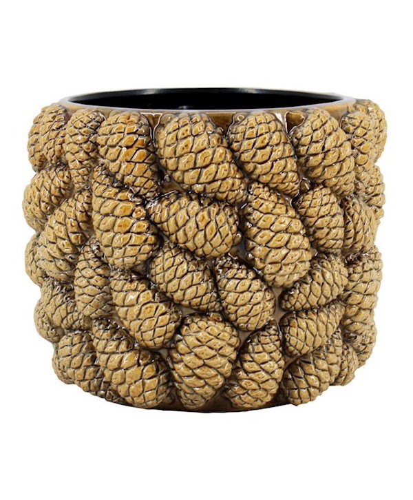 Elegante Macetero de cerámica con PIÑAS. Decoración para Ponsettia y elementos otoñales o navideños. Ideal para las decoraciones más originales.