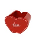 Corazón de cerámica rojo con la palabra LOVE en color blanco, ideal para decoraciones de San Valentín. Corazón brillante en tono rojo.