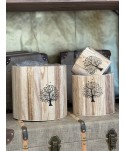 Bandeja rectangular de madera natural modelo NOLAN, con un conjunto de jarrones de cristal, madera y cemento ideales. ¡Conjunto muy original con piezas variadas!