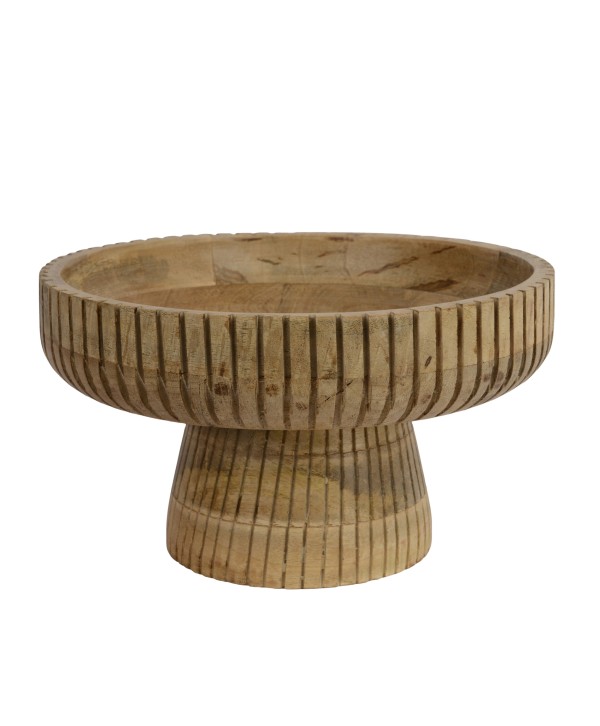 Cuenco de madera hecho a mano de Mango natural con pie y diseño de rayas en relieve. Complementos para floristerías y decoradores de interiores. Con certificación FSC mix (70%).