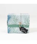 Papel de regalo Crema con diseño HOJAS DE FALGUERA AZULES Y VERDE, A DOBLE CARA, con cara interior en color VERDE. Envoltorios para el comercio y floristería. Proveedor Papel de Regalo. Envoltorios para el comercio, floristería, flores, plantas, lote de regalos.