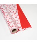 Papel de regalo Blanco con diseño de CORAZONES PESPUNTES ROJO, con cara interior en color rojo. Envoltorios para el comercio y floristería. Proveedor Papel de Regalo. Envoltorios para el comercio, floristería, flores, plantas, lote de regalos.