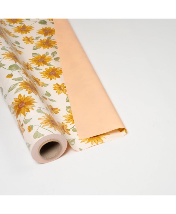 Papel de regalo Crema con diseño MARGARITAS AMARILLAS, A DOBLE CARA, con cara interior en color SALMON. Envoltorios para el comercio y floristería. Proveedor Papel de Regalo. Envoltorios para el comercio, floristería, flores, plantas, lote de regalos.
