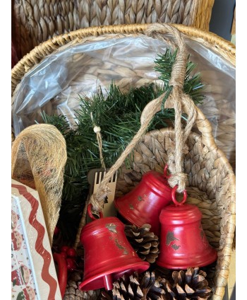 COLGANTE CAMPANAS ROJAS Y CUERDA DE YUTE 15 x 8 x H40cm. (Set 3u.)