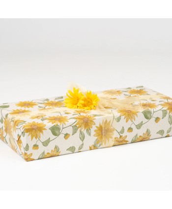 Bobina de papel de regalo con diseño de GIRASOLES AMARILLOS con el fondo blanco. Envoltorios para el comercio y floristería. Papel para regalo de San Valentín o el Día de la madre. Papel de regalo para la persona más especial. Papel de regalo y celofán al mayor. Papel de San Valentín.