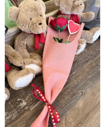 Pick redondo de madera natural con un corazón rojo en el centro. Ideal para complementar los ramos de San Valentín o del día de la madre. Pick con certificado FSC.