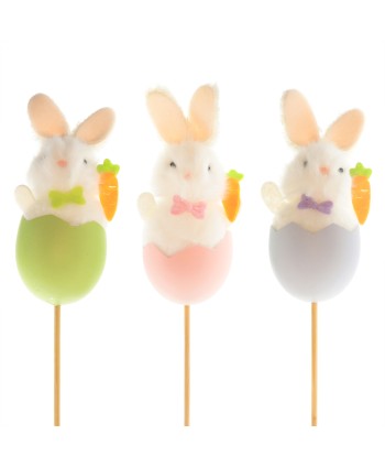 Descripción: Pick textil en forma de conejito textil saliendo del huevo. Picks de conejitos para pascua. Pick precioso de huevos de distintos colores. Pick de Madera con altura de 50cm.