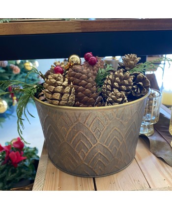 Piñas doradas para decoración, centros de mesa con piña decorativa. Tenga en cuenta que este es un producto natural, esto significa que puede diferir en forma y tamaño. Proveedor de piñas naturales al mayor.