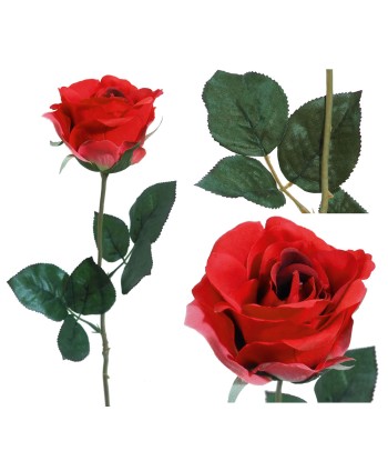 Descripción: Rosa artificial de tela en color rojo. Rosa individual de alta calidad.Proveedores de plantas artificiales al mayor. Mayoristas de decoración. La rosa para Sant Jordi o San Valentín.
