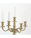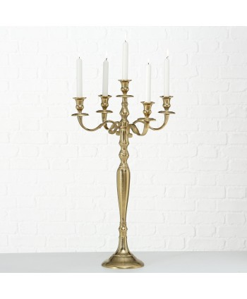 Descripción: Candelabro VICTORIA de aluminio dorado, con brazos ideales para cinco velas. Candelabro hecho a mano. Candelabros elegantes para eventos de lujo. Velas no incluidas.
