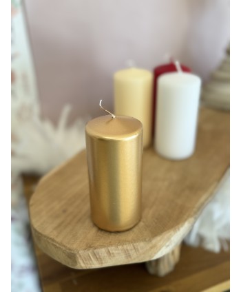 Vela lisa de cera dorada mate ideal para composición de centros de mesa.