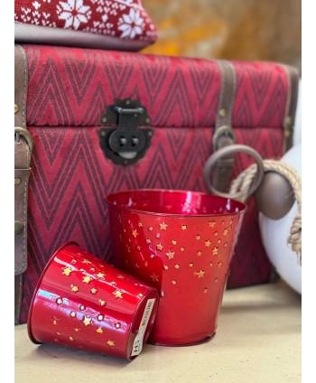 CUBO DE ZINC "HARPER" REDONDO ROJO CON ESTRELLAS ORO Ø11 x H10cm.