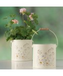 MACETA REDONDA DE ZINC "FLORES" CREMA CON ASA Ø20 x H18cm. (2u.)