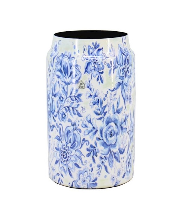 JARRÓN DE ZINC "RHODOS" FLORES AZULES Y BLANCAS Ø12,5 - 15 x H23cm.