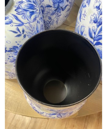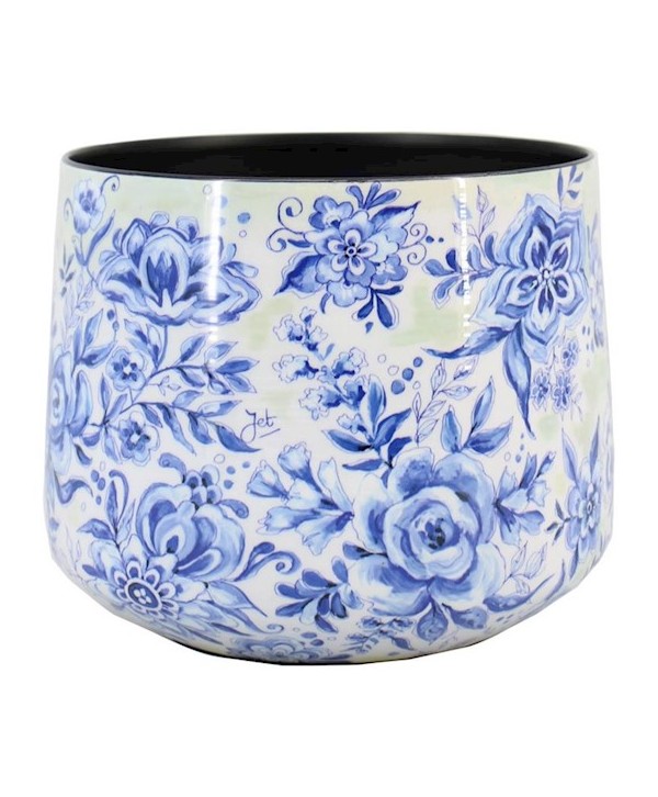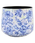 MACETERO DE ZINC "RHODOS" FLORES AZULES Y BLANCAS Ø17,7-19,4 x H16,5cm